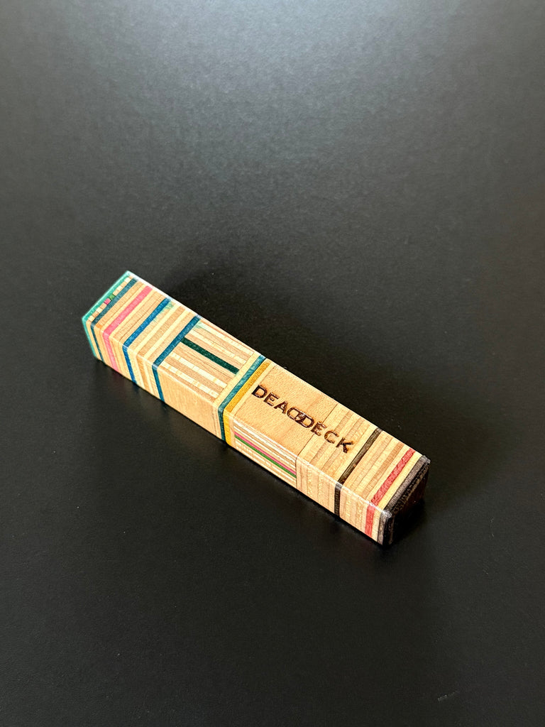 Hand made titanium tool made from recycled broken skateboards using hand ground titanium tips. This one features a magnet sheath for perfect travel, and just an all around sleek design.
